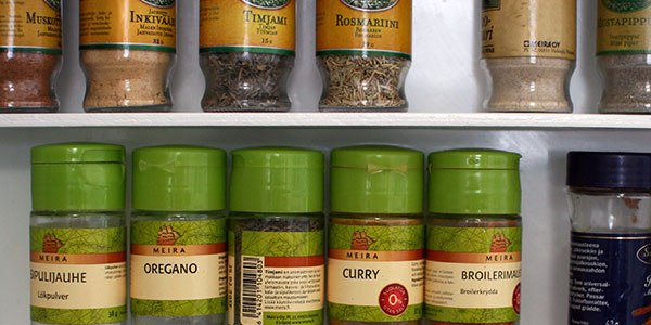 Muuton yhteydessä piilotin mausteet väliaikaisesti vetolaatikkoon lieden viereen. Siellä ne saivat kieriä puolitoista vuotta. Nyt laatikko vapautuu sopivampaan käyttöön, ja noille pussimausteillekin on pian tulossa ratkaisu.